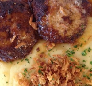 Für die Fleischlaibchen wird 1 Semmel entrindet und in einem Milch-/Wassergemisch eingeweicht. 1 Zwiebel schälen, fein schneiden. 2 Knoblauchzehen schälen, fein hacken. Zwiebel und Knoblauch in etwas Öl andünsten, auskühlen lassen. Eingeweichte Semmel ausdrücken und gut zerteilen, mit Zwiebel-/Knoblauchmischung, 60 dag Rinder- oder gemischten Faschierten, 25 dag gut gelagerten, in Würfel geschnittenen Bergkäse und 1 Ei gut vermischen. Mit Salz, Pfeffer, Majoran abschmecken, nochmals gut durchmischen und Laibchen formen. Laibchen in Butter beidseitig braten – fertig.