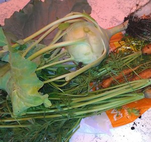 Meine letzten Kohlrabi werden jetzt aus dem Hochbeet geerntet und morgen zu Kohlrabigemüse verarbeitet.