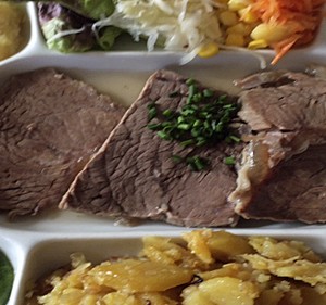 Wir haben uns wieder einmal so richtig verwöhnen lassen und Tafelspitz mit den typischen Beilagen Erdäpfelschmarrn, Sauce tartare, Spinat und Apfelkren genossen.