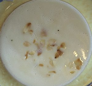 Aus 8 dag Butter und 8 dag Mehl eine Einmach bereiten, diese mit Suppe aufgießen. Das ganze gut versprudeln und circa 20 Minuten kochen lassen.