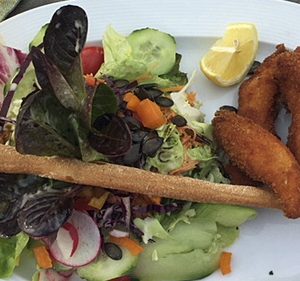 Wenn es einmal nicht so voluminös, aber doch magenfüllend sein soll, bieten sich Hühnerbrust-Streifen, die auf einem herbstlichen Salatbukett serviert werden, total an.