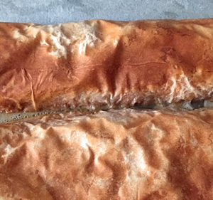 Strudelteig laut Anleitung zubereiten, mit warmer Butter beträufeln, Topfen-Gemüsefülle auf zwei Drittel des Teiges auftragen, Teig zu einem Strudel zusammenrollen, mit verschlagenem Ei bestreichen und im Rohr knusprig backen – fertig.