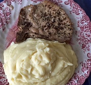 Kümmelkotelett mit Erdäpfelpüree und Salat nach Saison servieren – guten Appetit!