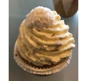 Creme mit einem Spritzsack auf die Kokos-Haselnuss-Muffins dressieren, mit fein gehackten Haselnüssen und Kokosflocken verzieren und danach genießen – guten Appetit!