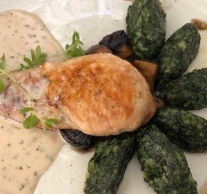 Wenn wir uns verwöhnen lassen, dann aber so richtig. Diesmal gab es für uns eine gebratene Hühnerbrust in Kräutersauce, dazu Spinatnocken und Ofenerdäpfel. Uns hat es wie immer geschmeckt und für Sie hätte ich das passende Rezept zum Nachmachen.
