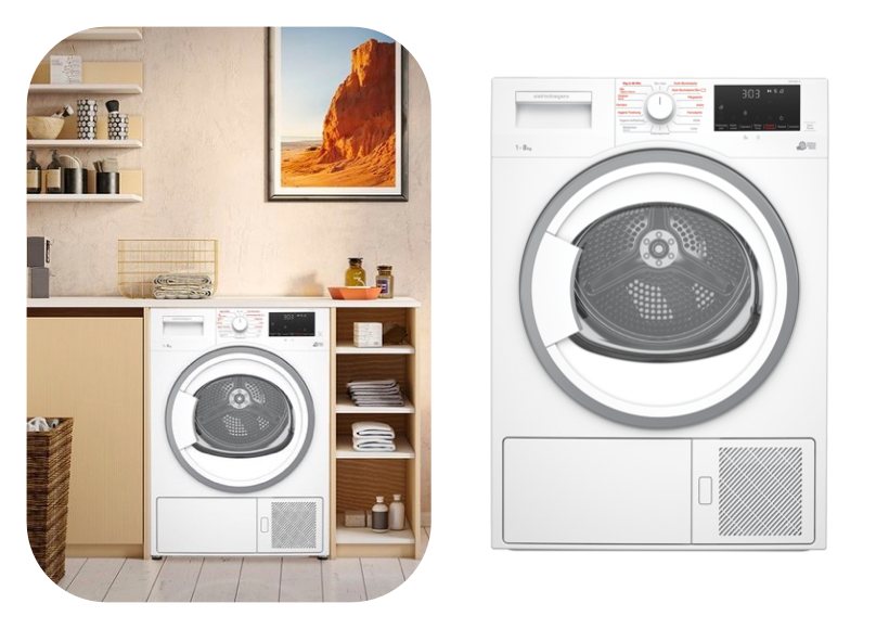 Gleichzeitig soll eine bis zu 30 Prozent kürzere Trocknungszeit erzielt werden können und die Wäsche dank bis zu 8 Kilogramm fassender AquaWave Schontrommel, bei der die Wäsche wellenartig bewegt wird, besonders schonend getrocknet werden.