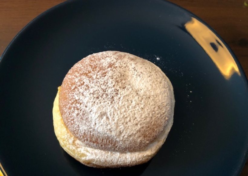 Kleiner Tipp am Rande: Statt mit Vanillezucker bestreut, kann der Krapfen auch mit einer Kaffeeglasur bestrichen und mit einigen Schoko-Kaffeebohnen verziert werden.