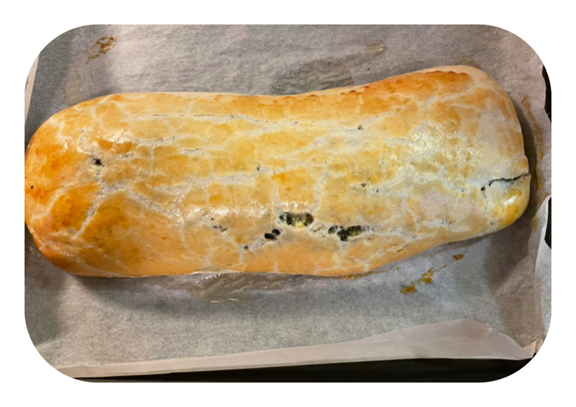 Zucchinistrudel mit viel Salat nach Saison und Kräutersauce servieren – guten Appetit!