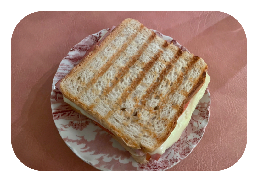 Hühnchen-Avocado-Toast auf den Toaster legen und beidseitig schön knusprig toasten – fertig.