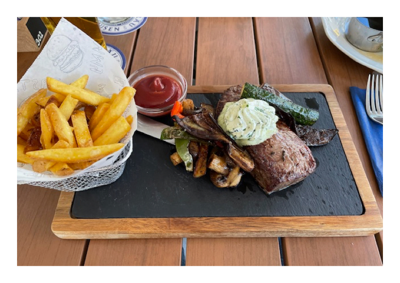 Jetzt muss ich wieder aus dem Nähkästchen plaudern. Mein lieber Gespons liebt Steaks in allen Variationen. Da ich sie zwar esse, sie aber nicht unbedingt zu meinen Lieblingsspeisen gehören, lässt er sich immer dann damit verwöhnen, wenn wir unterwegs sind und sie auf der Speisekarte aufscheinen.