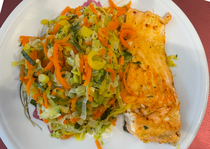 Gegrillten Lachs mit Juliennegemüse servieren – guten Appetit!