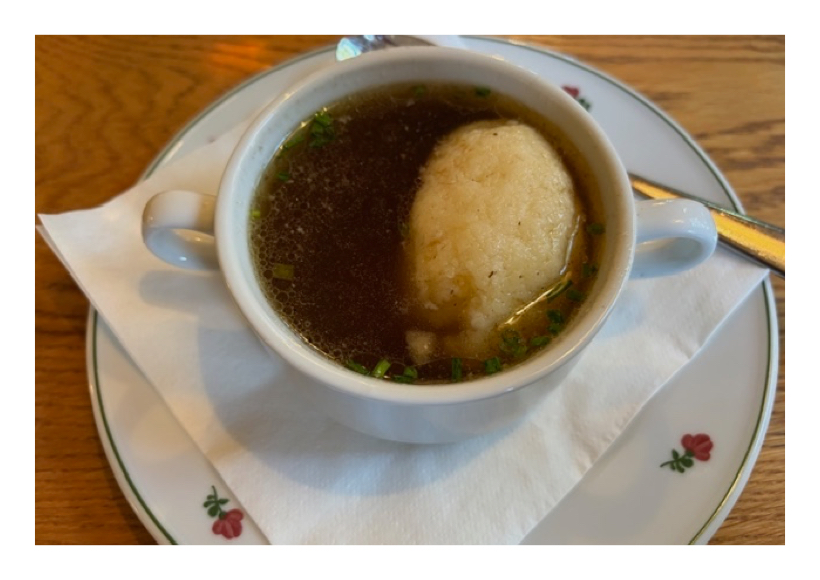 Rindsuppe mit Forellen-Grießspatzen eventuell mit Schnittlauch bestreut servieren – guten Appetit!