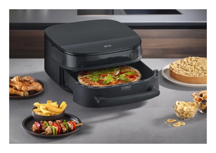 So stellte Caso Design auf der Ambiente 2026 seinen neuen AirFry & PizzaChef vor, der zum Frittieren, Backen, Aufwärmen, Rösten, Dörren und vor allem, so der Hersteller, für die Zubereitung einer ganzen Pizza bis 30 cm Durchmesser genutzt werden kann.