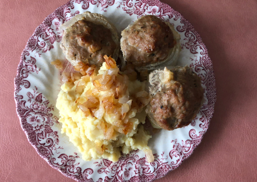 Wie wäre es mit all den Resten, die weiterverarbeitet in Zwiebeln gefüllt werden und dann mit Erdäpfelpüree für die passende Magenfüllung sorgen.