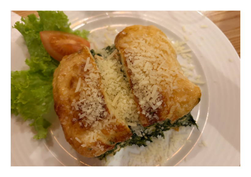 Bärlauch auf den Tellern anrichten, pikant gefüllte Blätterteigtascherl darauf legen und mit geriebenem Hartkäse bestreut servieren – guten Appetit!