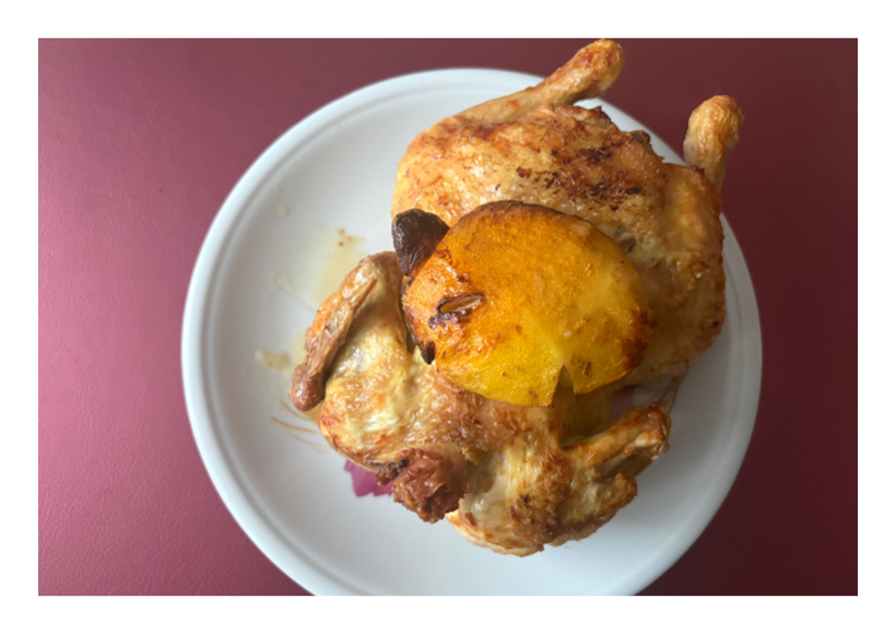 Für das Zitronenhuhn aus dem AirFryer wird 1 ausgenommenes, küchenfertig geputztes Huhn gewaschen und trockengetupft.